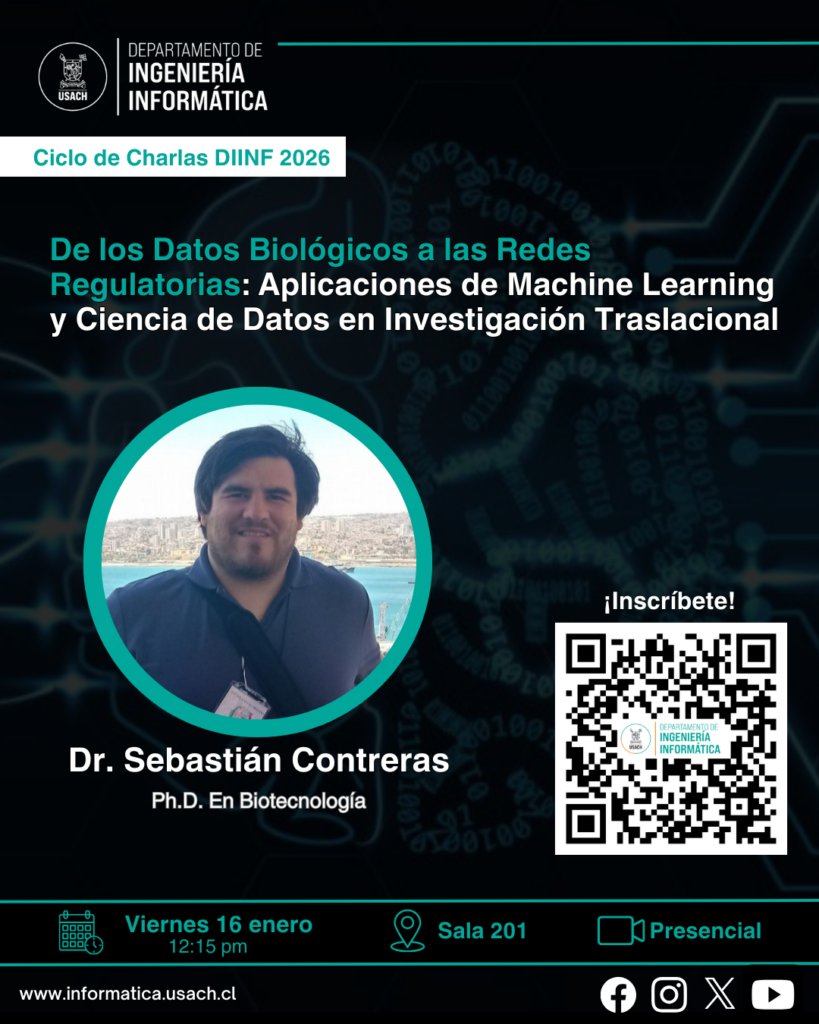 El Departamento de Ingeniería Informática te invita a participar en la charla:”De los Datos Biológicos a las Redes Regulatorias: Aplicaciones de Machine Learning y Ciencia de Datos en Investigación Traslacional”
